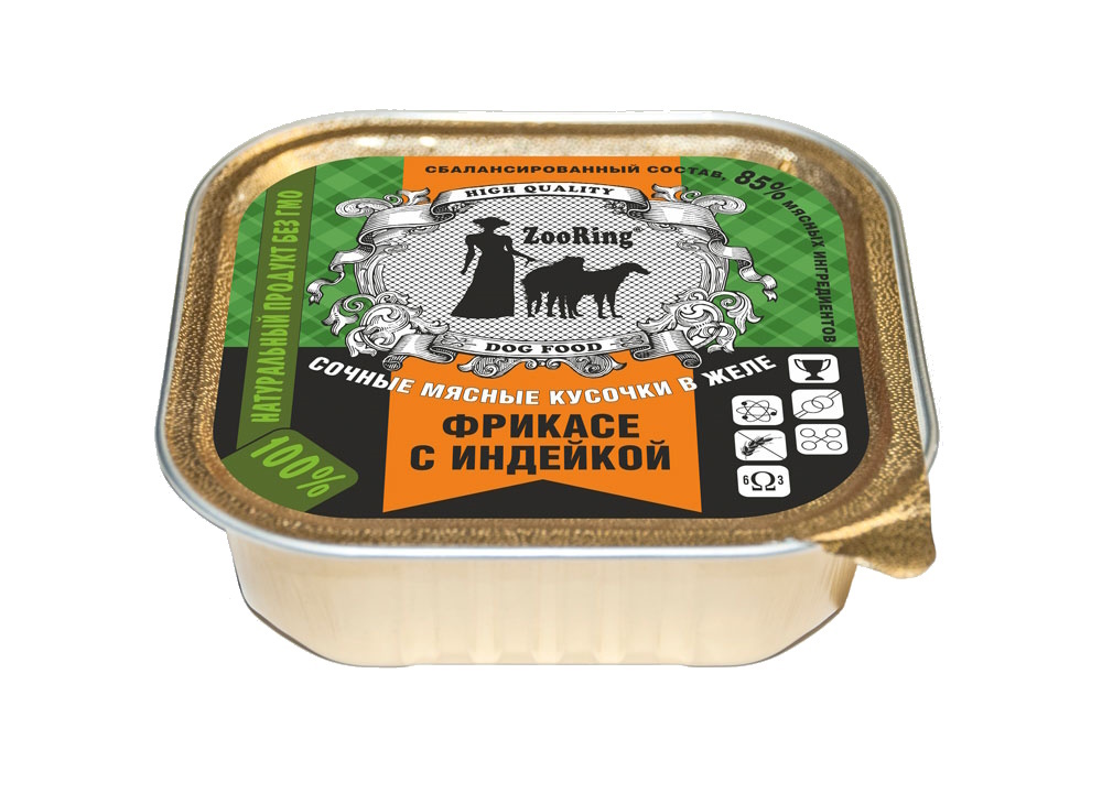 Корм ZooRing Фрикасе с индейкой кусочки 100г 16шт